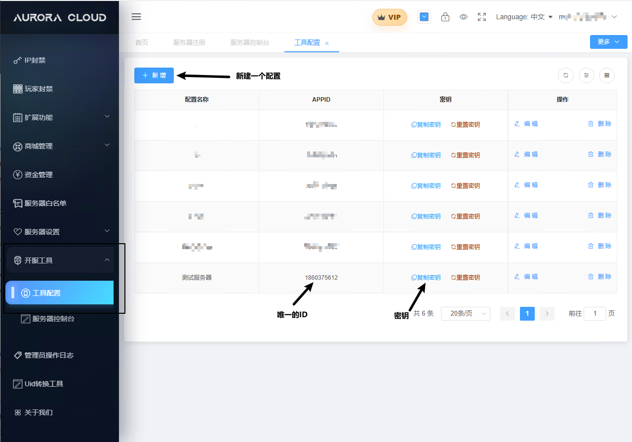 1.设置工具配置:创建工具配置(获得APPID和密钥)