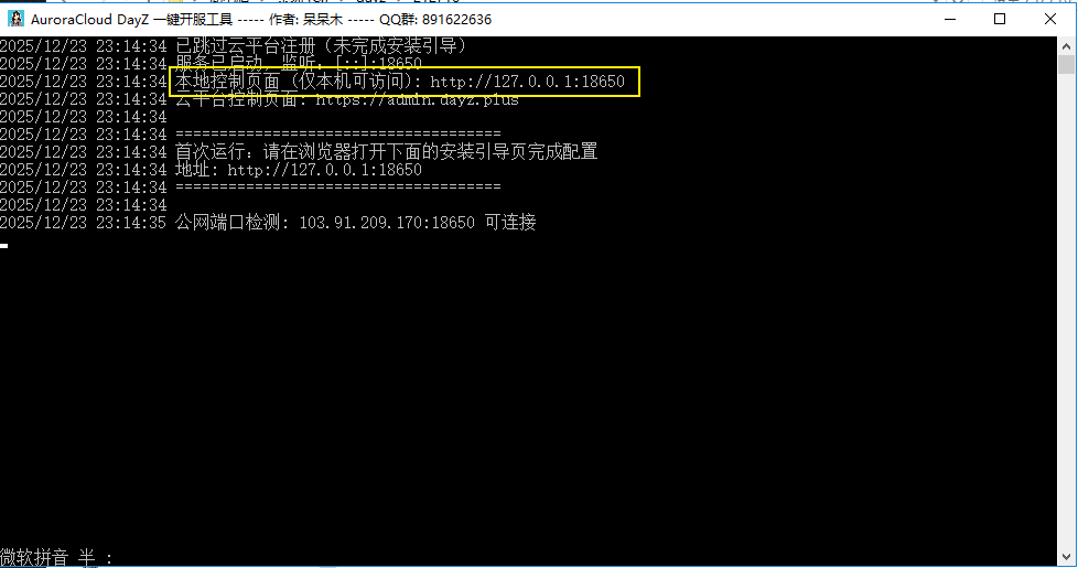 启动程序后,在命令窗口可以看到一行本地控制页面的访问地址一般是127开头,然后把这个地址输入到服务器的浏览器里面,浏览器会显示一个本地控制台界面。