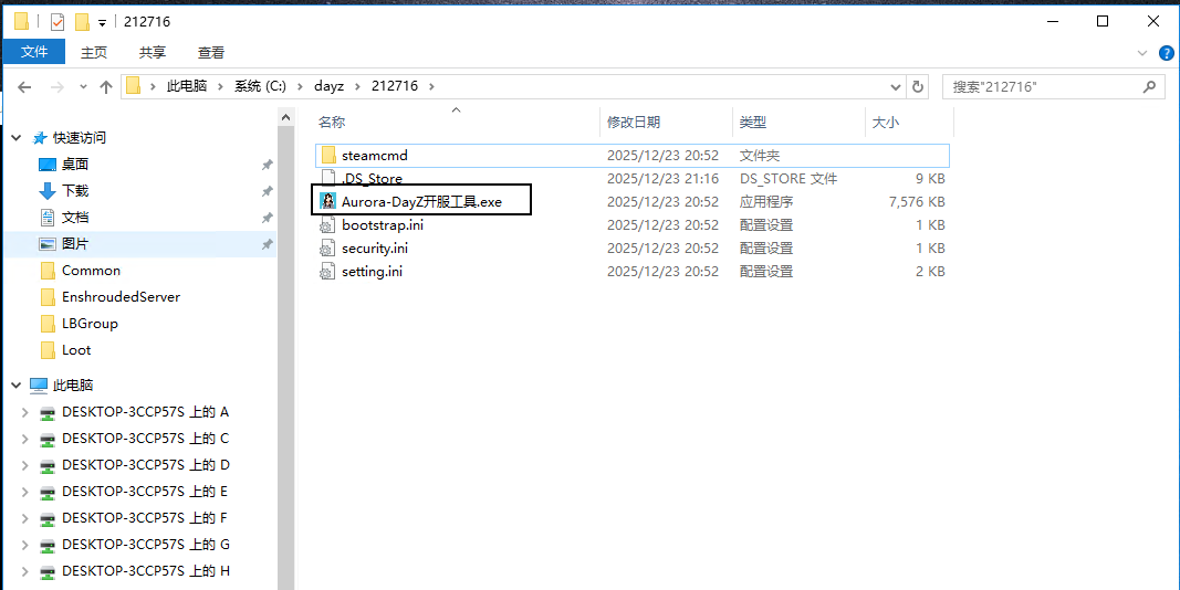 把服务器工具的文件夹放到你想安装的路径文件夹里面,然后启动文件夹里面的“Aurora-DayZ开服工具.exe”程序。