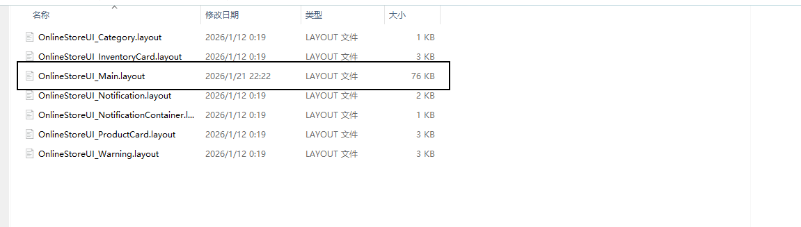选择对应的UI文件OnlineStoreUI_Main.layout