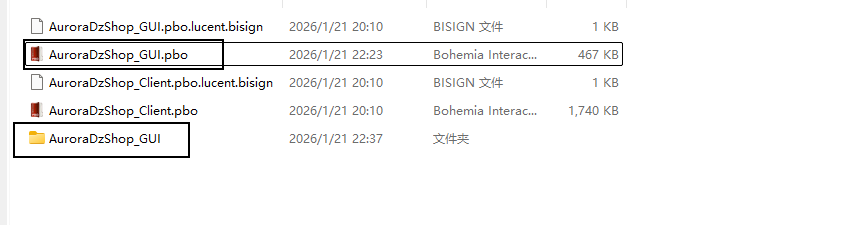 第一步,打开商城的UI模组AuroraDzShop_GUI.pbo,用PBO工具打开